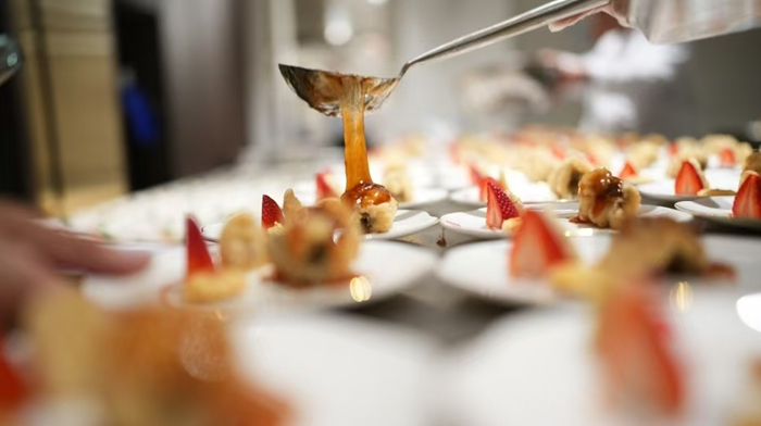 “马年新春年夜饭”将整场活动推向高潮,来自山东的五位主厨团队以传承千年的“孔府菜”为核心,打造了一场视觉与味觉的双重盛宴。“孔府六艺冷拼——牡丹花”展示了精湛的刀工与食礼合一的思想;“诗礼银杏”与“孔府八珍盅”承载着儒家文化的雅致;“孔府酱烧牛肋排”与“清汤浮油鸡片”展现了中式烹饪对原汁原味的极致追求,而“蒜蓉波士顿龙虾”与“澳洲带子”的加入,更是东西方优质食材的完美邂逅。现场,智能炒菜机精准复刻川香辣子鸡、麻婆豆腐等经典风味,展现中国智造的现代活力。